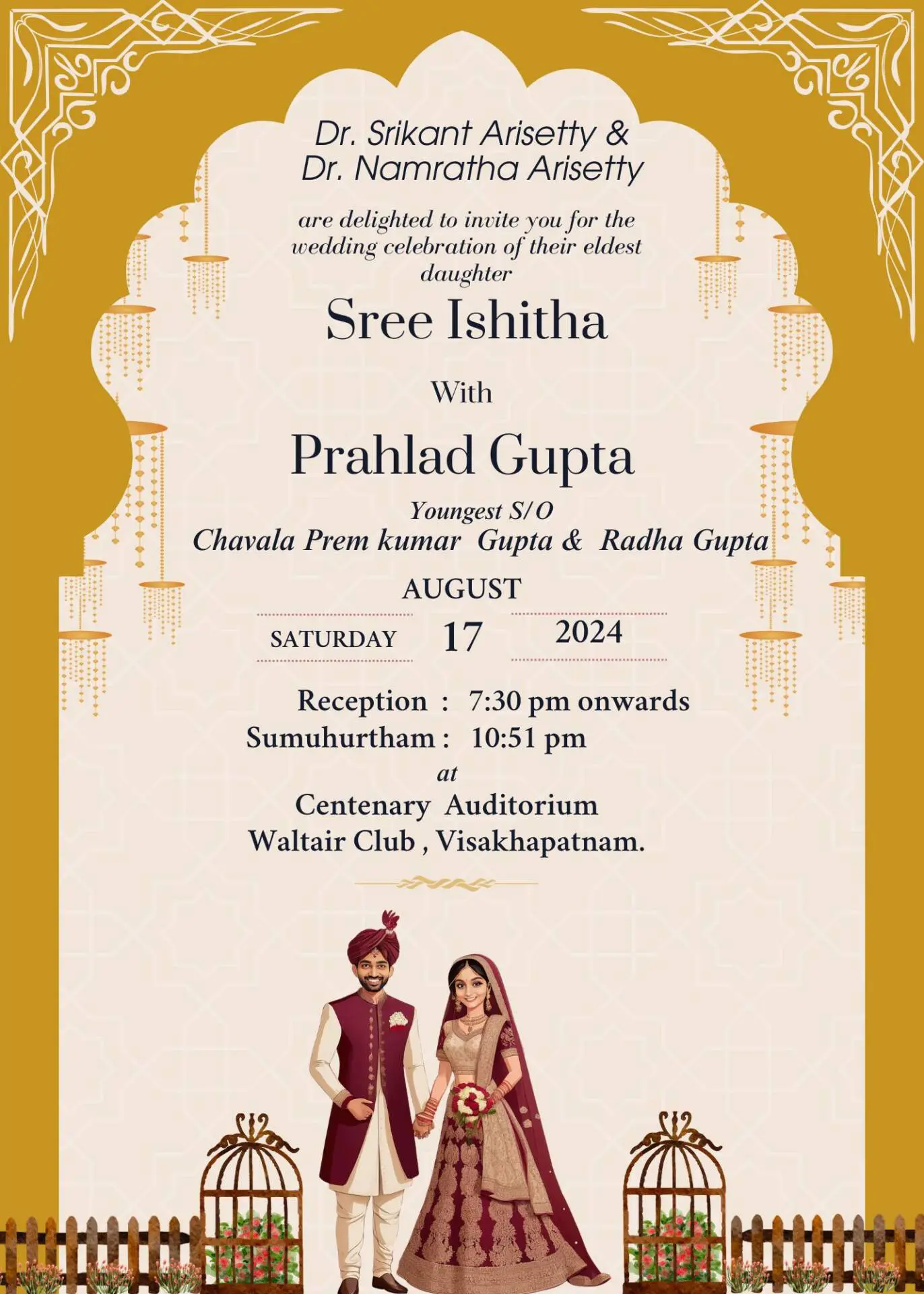 Prahlad Gupta Dr. Srikant Arisetty & Dr. Namratha Arisetty are delighted to invite you for the wedding celebration of their eldest daughter