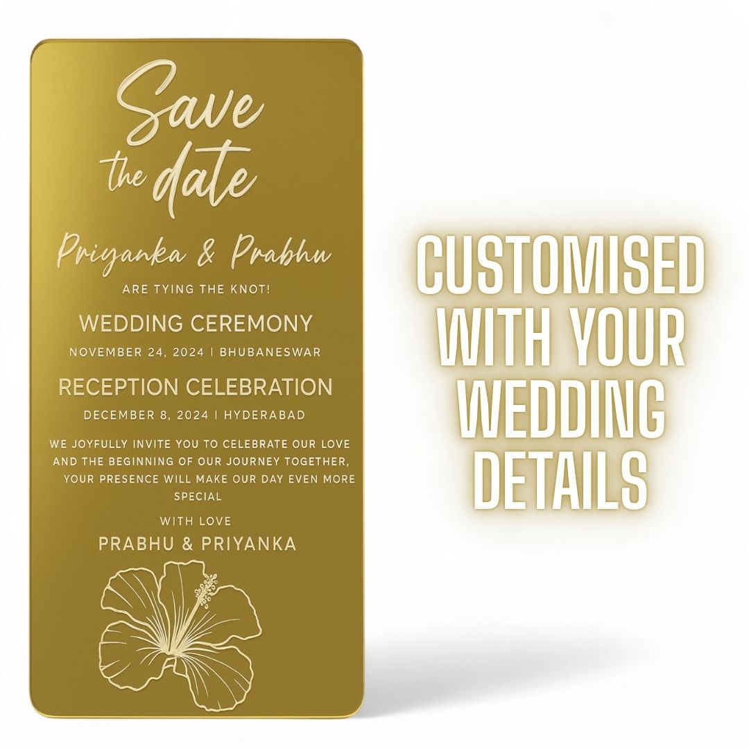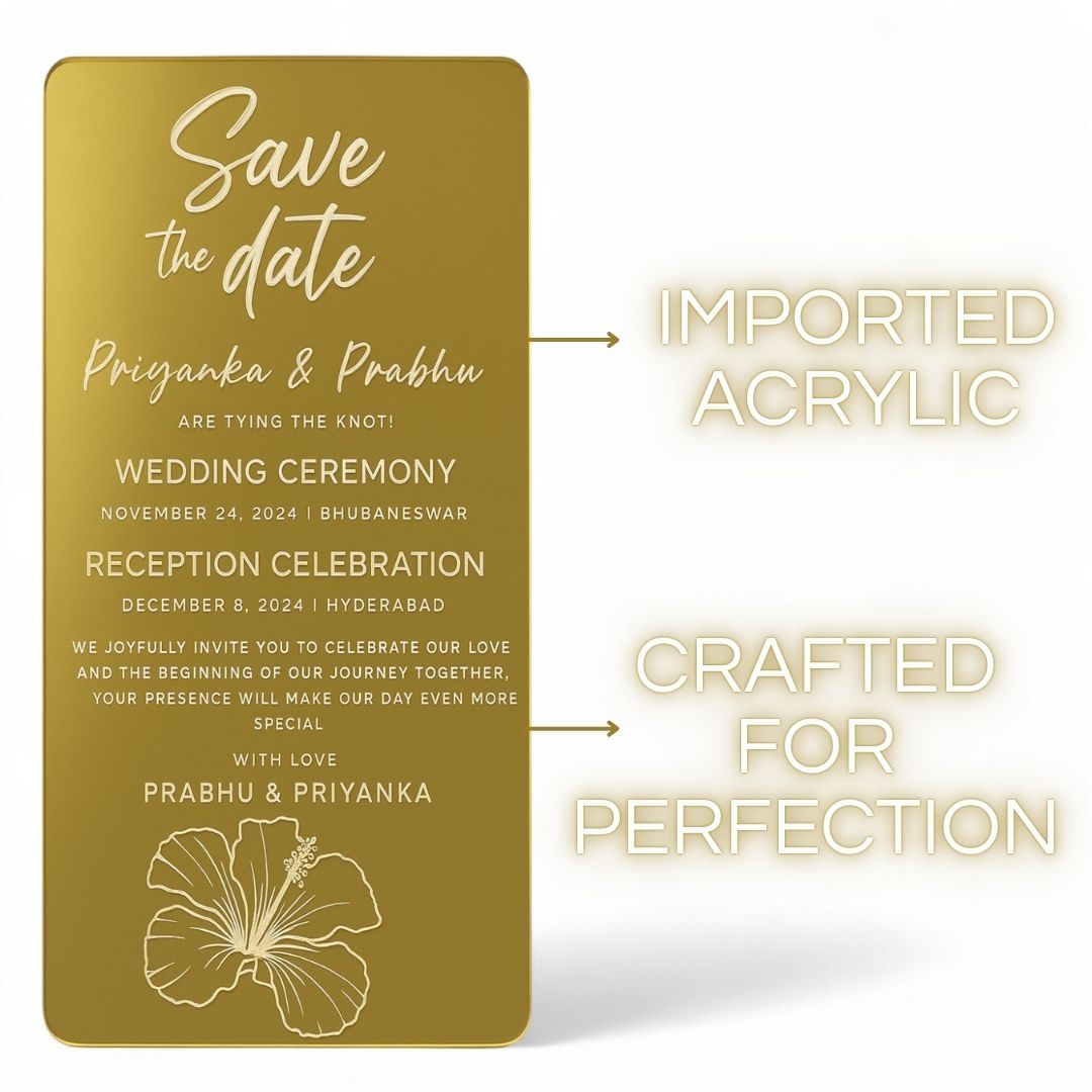 3 Premium Styles: Frosted Acrylic • Gold Mirror Acrylic • White Printed Acrylic Wedding Cards