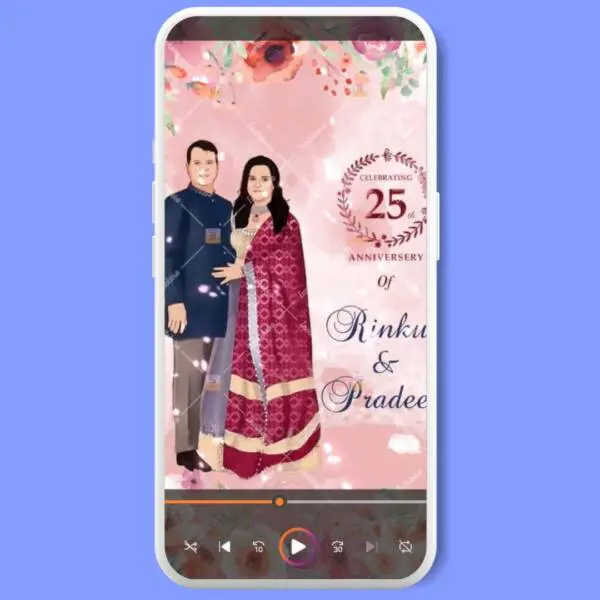 Elegant Anniversary Invite with Personalized Caricature – Celebrate Your Love!