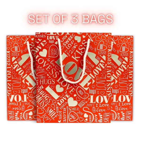 Gift Bags | Classic Emerald Love, Hugs & Kisses Lavender, Love & Joy Red, Sweet Love Pink |