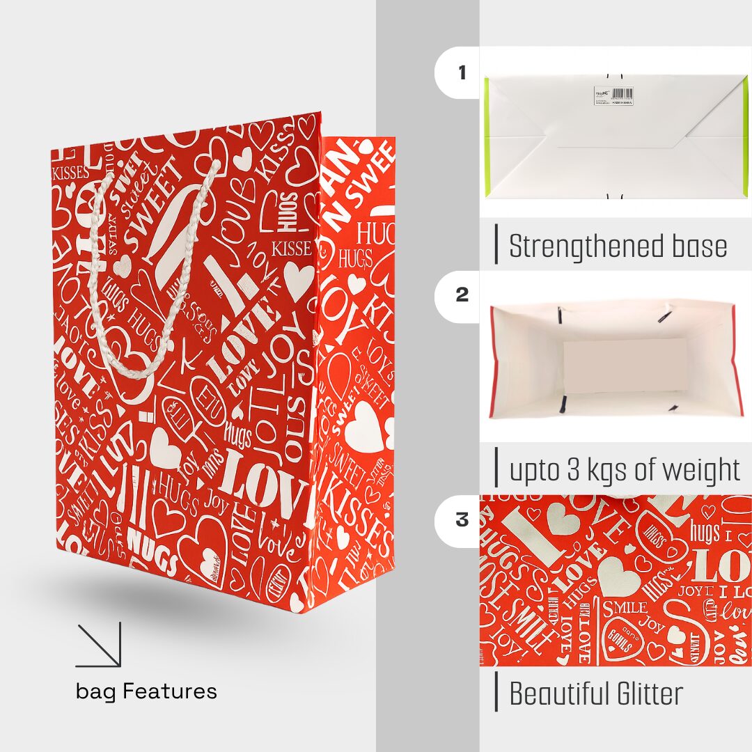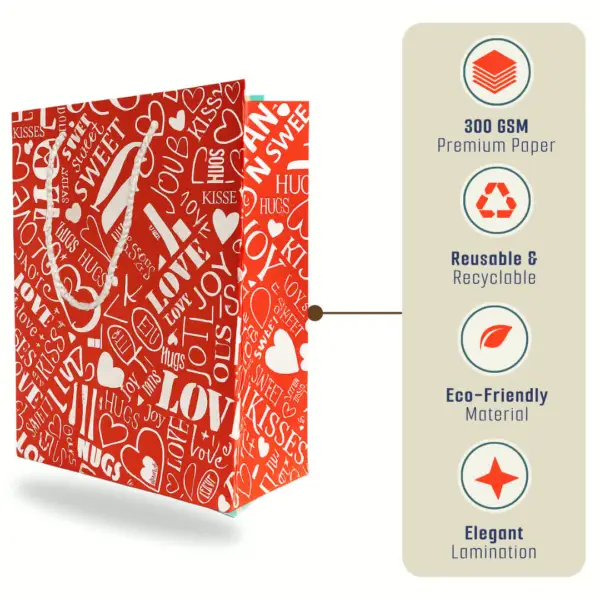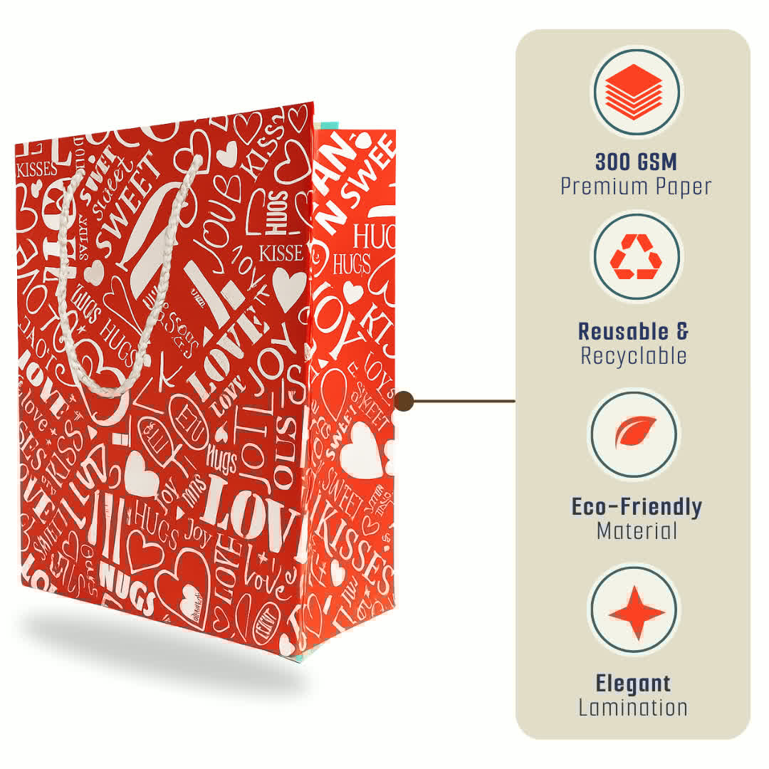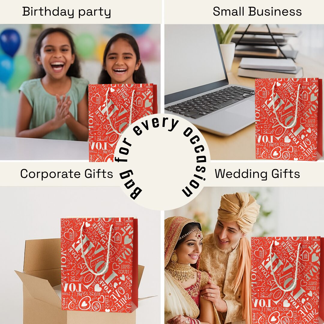 Love & Joy Gift Bags – Romantic Printed Paper Bags for Gifting, Return Gifts & Parties