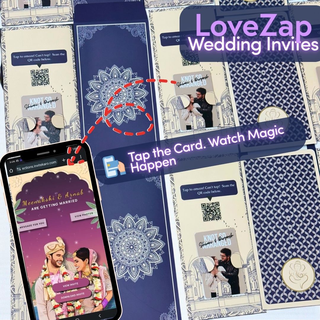 Experience the best wedding card that blends timeless Indian traditions with modern innovation. Our LoveZap wallet card is more than a mere invite โ itโs an interactive gateway to an unforgettable celebration. Tap it against a phone to unveil a heartfelt message on screen, elevating the joy of the occasion.