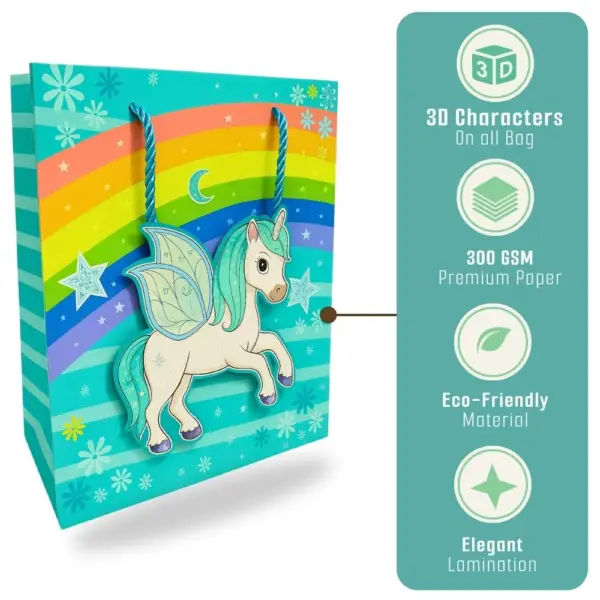 ✨ Premium 3D Gift Bags – Eye-catching designs (rockets, unicorns, football, race cars & more) with raised pop-out effects—no need for extra wrapping.