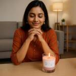 Premium scented candle in glass jar, made with soy wax for long-lasting fragrance. Perfect for home dรฉcor, relaxation, meditation, and gifting