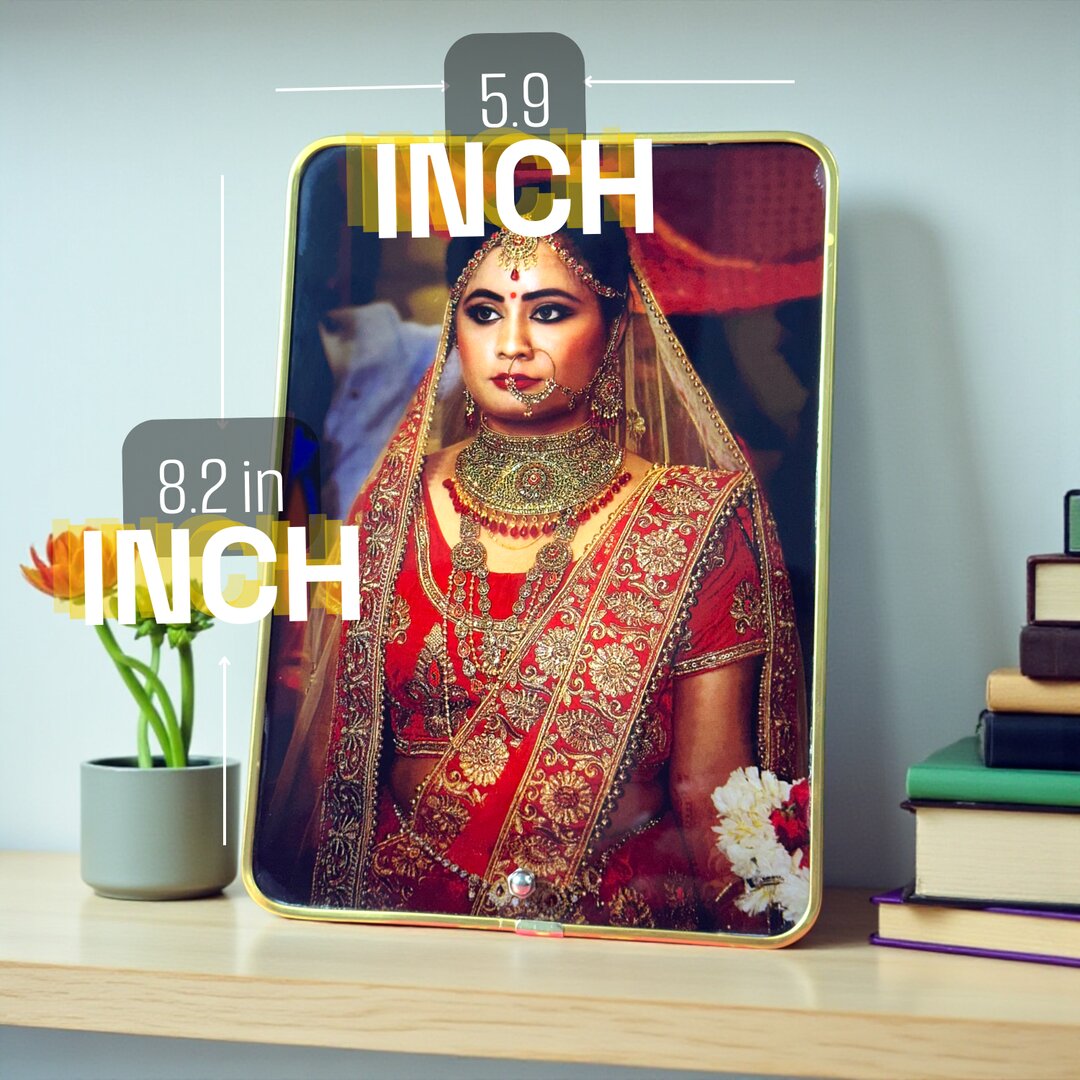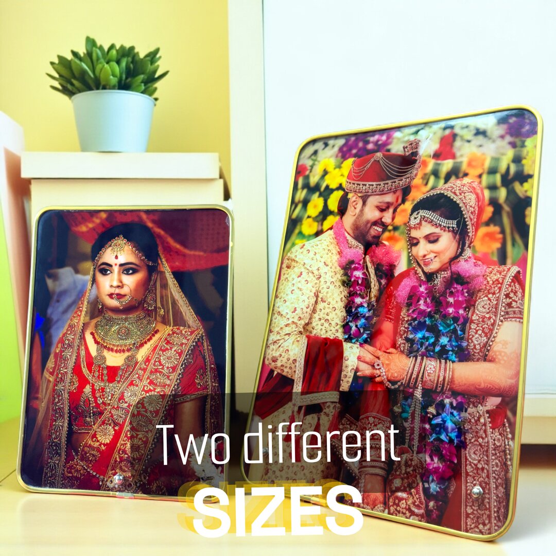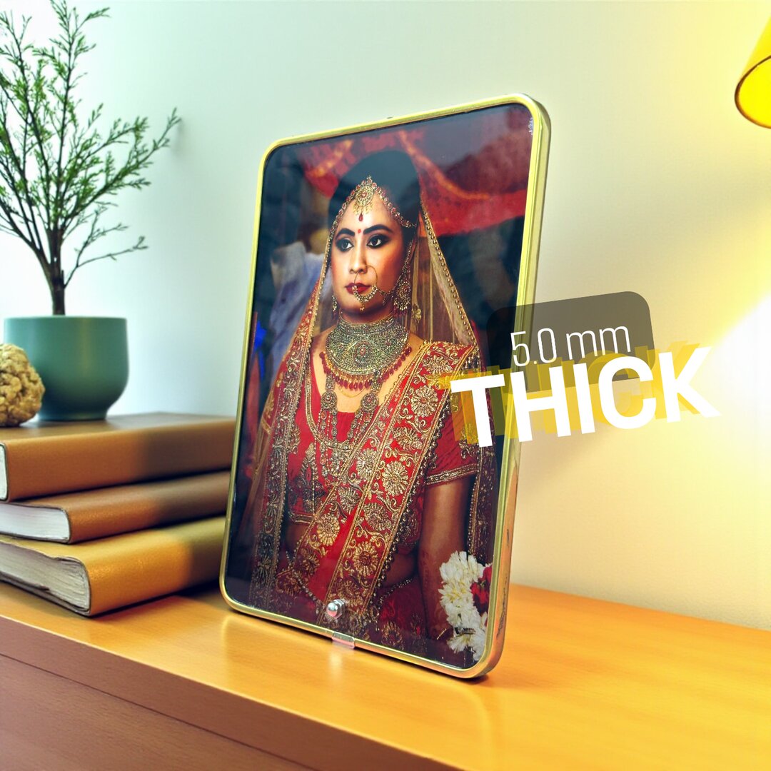 Customised Photo Frame with Golden Edge | Personalized Print | High-Gloss Finish, Tabletop & Shelf Dรฉcor