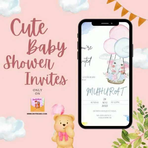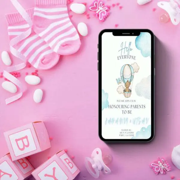 Invite the whole family and friends to celebrate this special moment with this adorable baby shower invitation. This cute invite design will make your invitation card a real eyecatcher! With pastel colors like blue, green and pink combined with cute, funny animations of all baby elements there is a lot for everyone to love about these cards.
