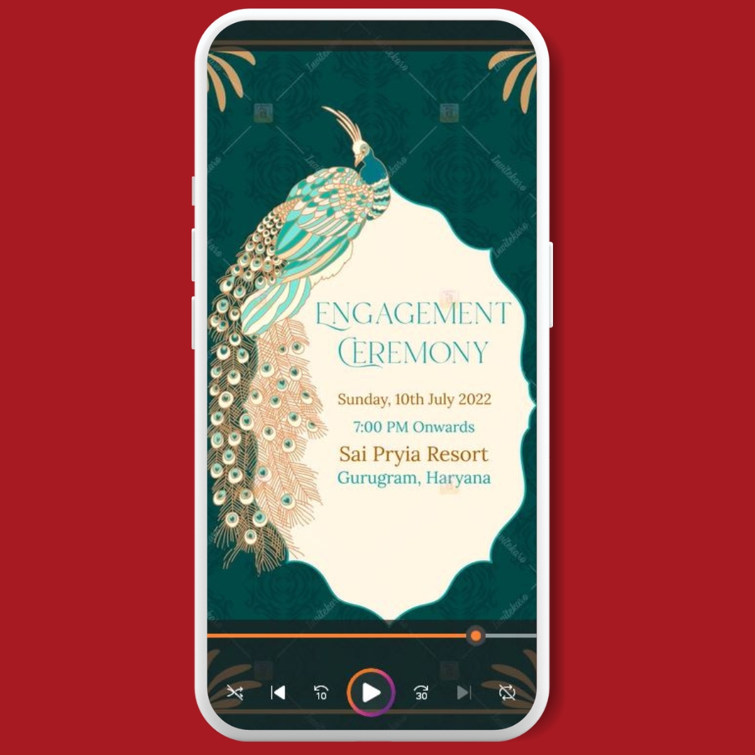 Elegant Peacock Theme Engagement Ceremony Invitation