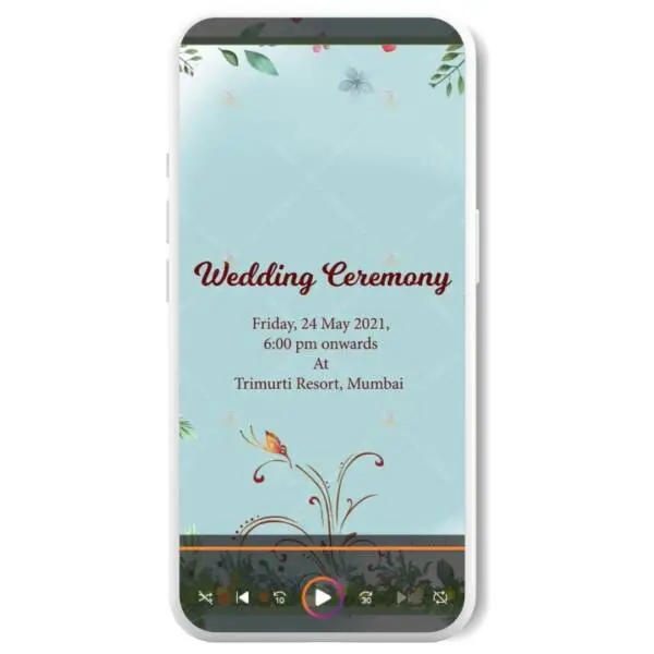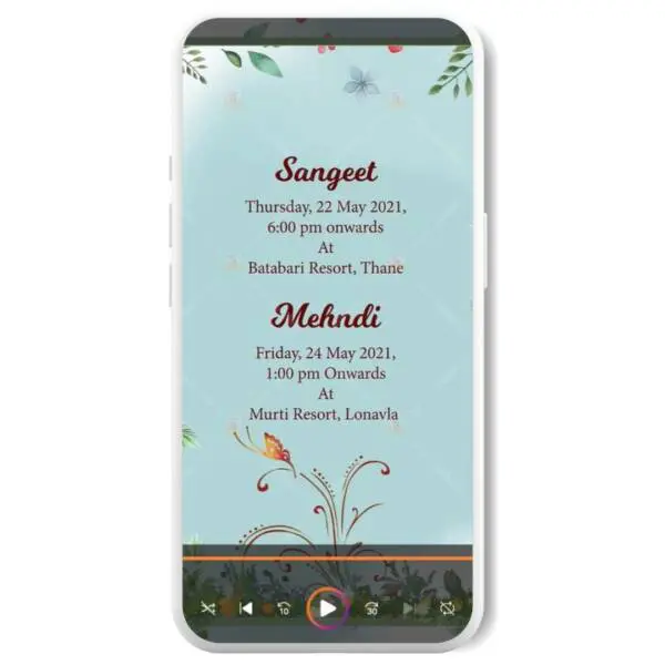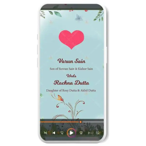 The E-invite features a captivating sky-blue color theme that sets the perfect tone for your big day. As you explore the invitation, you’ll be enchanted by the showers of flowers and hearts that surround the couple, adding a touch of romance and whimsy to the design.