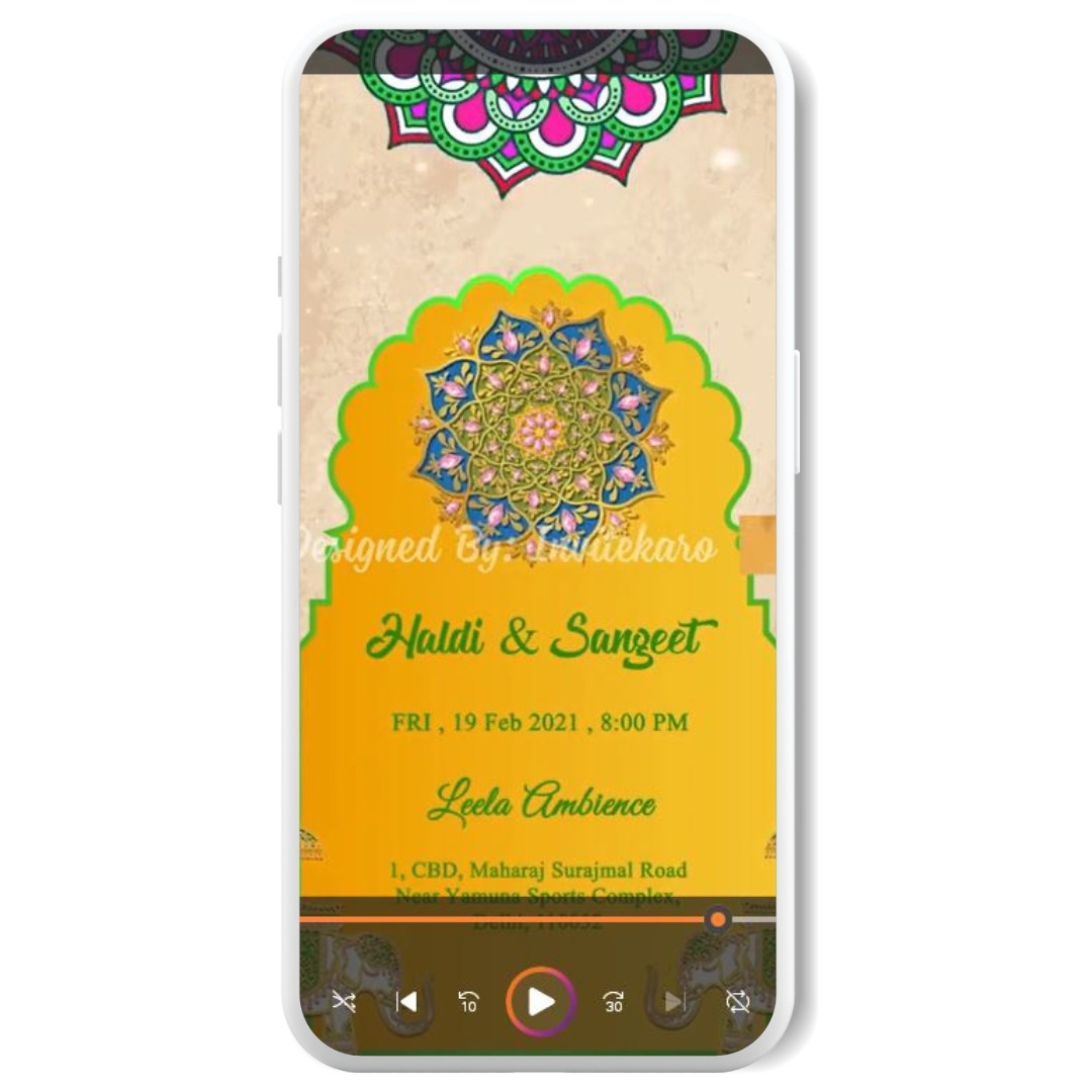 But that’s not all โ€“ our E-invitation is a canvas of vibrant colors, with themes designed for every function of your wedding journey. Whether it’s the colorful mehndi ceremony or the serene sangeet night, this invitation has the perfect theme to match the mood of each event.
